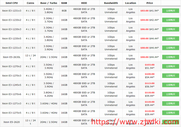 | E3-1231v3 | 8GB | 480G(SSD)或2T(HDD) | 1Gbps | 无限流量 | 1个(1800G防御) | $41.94/首月 |