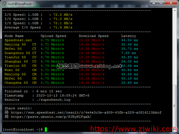 下面是采用一键命令对国内三网上传下载进行测试,该机器为5M带宽,测试上来看入网速度没有限制那么严格。