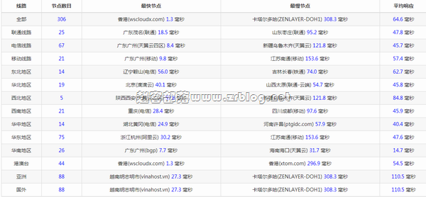 通过在中国大陆,港澳台和亚洲地区300多个节点对主机进行了ping测试