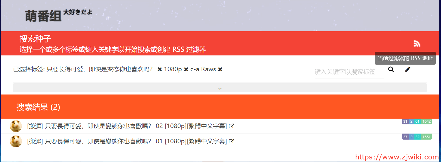 DownloadStation的功能主要负责定时从RSS订阅列表中抓取新的下载链接完成下载,既然时基于RSS订阅,我们自然需要订阅地址,很多资源站都提供了RSS订阅功能。就拿我使用的bangumi来说,只需要选择合适的关键词,就可以生成RSS地址。