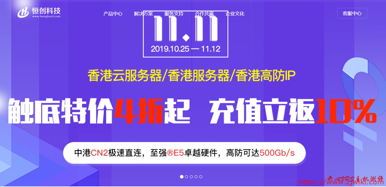 具体11月11日还有些日子,国内各个电商平台早已经开始各种活动,主机界也不例外!恒创科技的双十一活动时间从10月25日到11月12日,活动商品包括香港云服务器、香港独立服务器、高防IP等,同时活动期间充值最高可获10%返还。特别提醒下,恒创的活动历来价格都是首付或者首月优惠,续费原价,请务必留意。