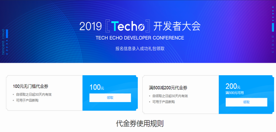 领取页面:点击直达2019Techo开发者大会领券地址