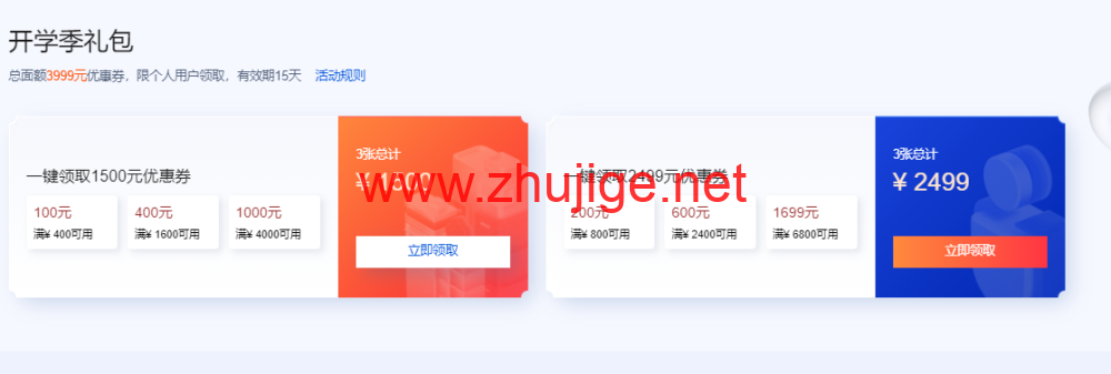 总面额3999元优惠券,限个人用户领取,有效期15天
