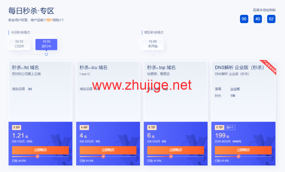 腾讯云云上盛惠DNSPod分会场,每日秒杀.ltd 域名年付1.21元,DNS解析专业版全年底价年付19.9元,DNS解析 企业版(秒杀)年付199元,需要的可以围观。
