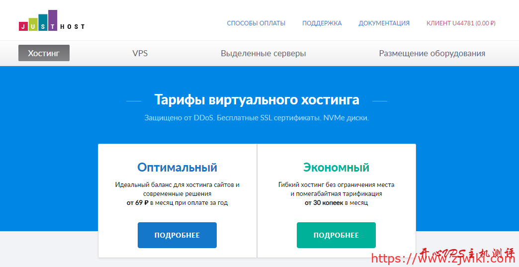 去年12月初部落分享过一次Justhost.ru的一些重要更新,包括支持带宽升级/提供机房或者IP更换服务等,本月,商家针对VPS主机再次提供了8折优惠码,优惠后最低每月87卢布起,折合人民币不到10块钱,基于KVM架构,均为无限流量套餐,可选HDD、SSD或者NVMe磁盘,支持PayPal、信用卡或者支付宝等付款方式,现在可选择俄罗斯5个不同机房。