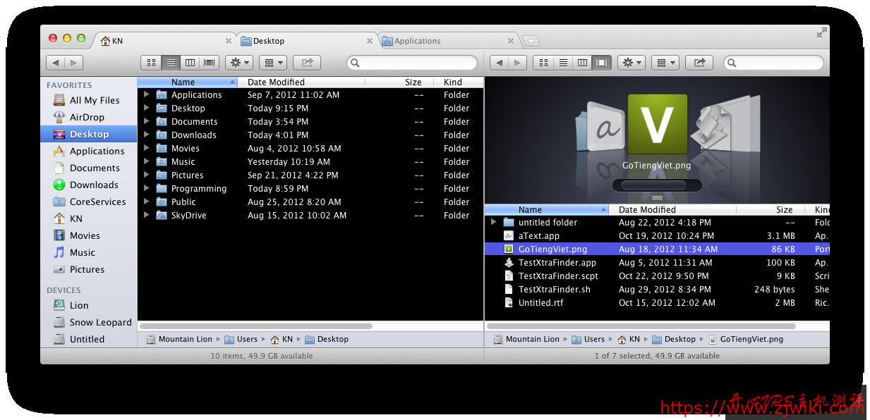 MacBook自带的资源管理器(Finder)已经可以满足一般的需要,但是当你有大量文件维护操作后,你就需要一个更强大的Finder。XtraFinder完全集成到Finder里面,你根本感觉不出它是一个第三方的应用程序,同时还提供很多增强特性,比如: