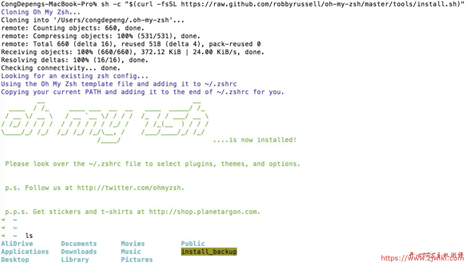 关闭终端重新打开后,你将默认使用zsh作为终端Shell。然而你会发现,终端并没有变得多酷炫,接着往下走,安装Oh My ZSH!