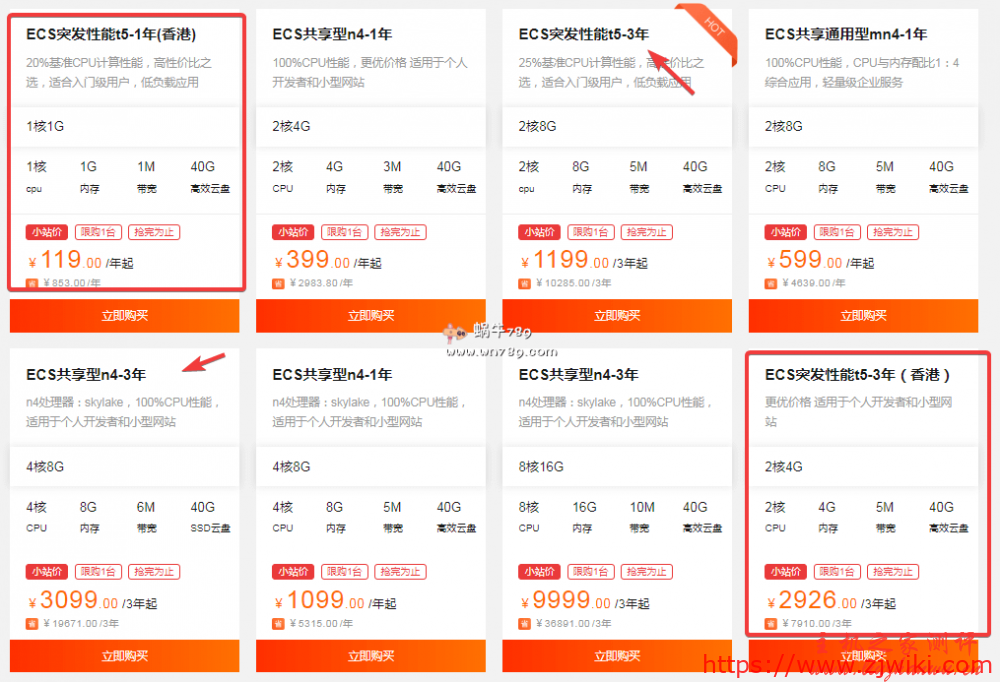 当然并不是说突发性能型云服务器不能用,如果预算资金不是特别充足,购入进来用于建个小博客也是没点压力的,毕竟网站一般也是突发使用CPU高一点,无需长期占有CPU性能!所有突发性能的2核4G5M899元/3年、2核4G3M639元/3年方案也是可以选择的。不过和100%CPU性能方案相差不是特别大,三年也就是100元左右的差距,这个看自己的选择了。