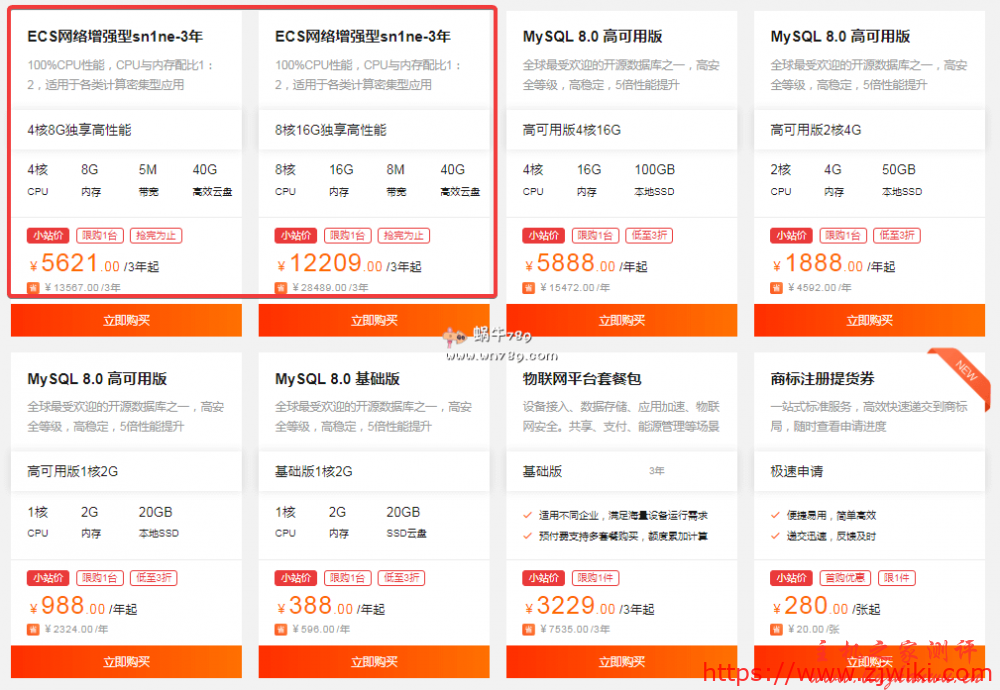 另外还可以重点关注的就是4核8G6M、8核16G10M配置的两款高配方案,基本能满足一般的商城站点需求了,企业级用户非常适合。