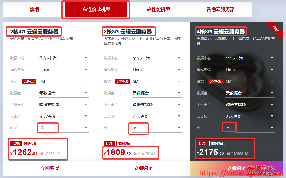 阿里云:2021年2月份阿里云服务器一年和三年的优惠价格表